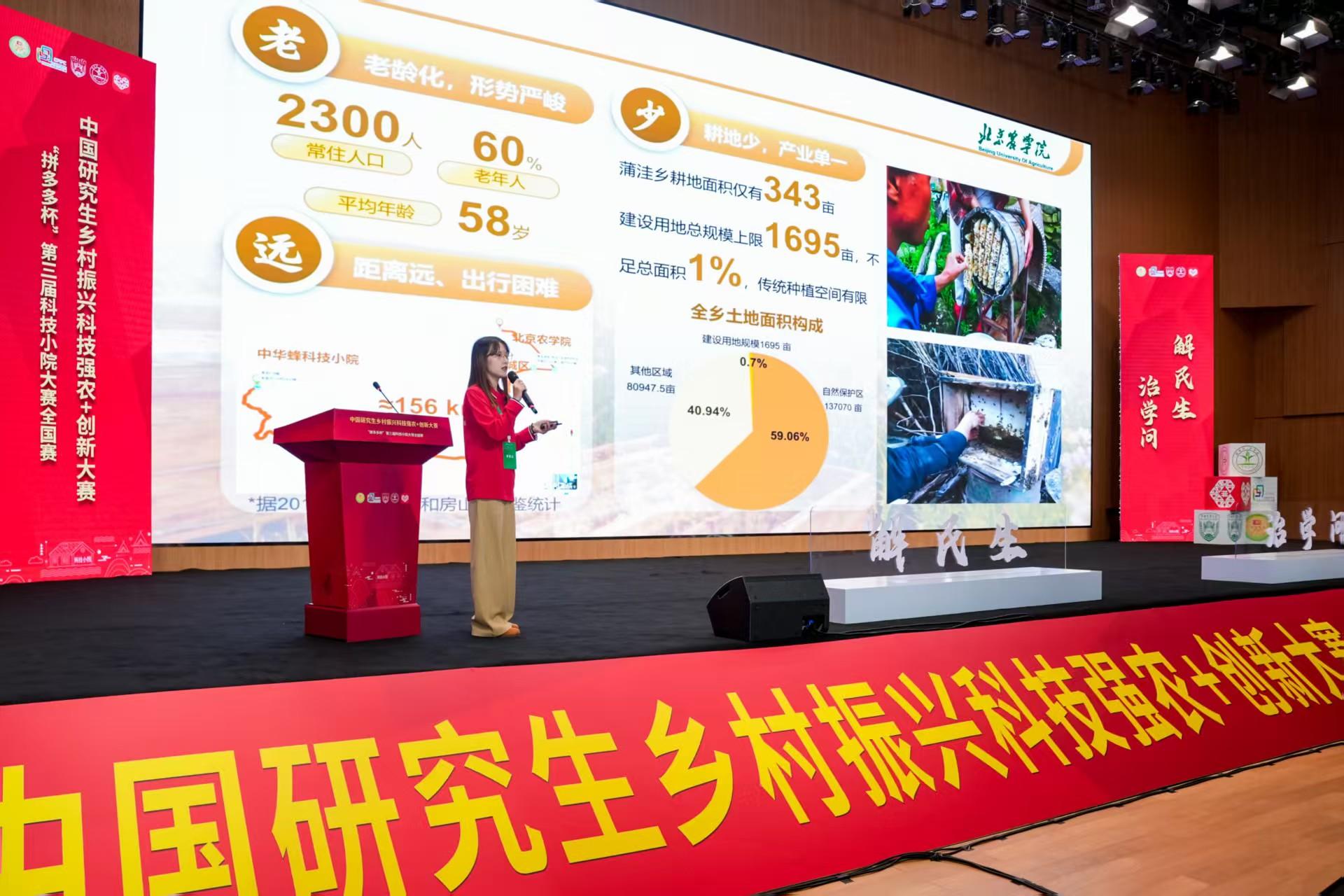 据悉,本届大赛由教育部学位管理与研究生教育司指导,以“解民生、治学问”为主题,设置多个竞赛赛道,吸引了来自全国29个省(自治区、直辖市)、87家研究生培养单位的247支队伍参赛。大赛围绕乡村振兴与科技强农实践,对参赛项目的技术创新性、应用可行性和服务成效进行综合评审,并通过多轮评选与实地考察,全面检验项目的实际运行效果。